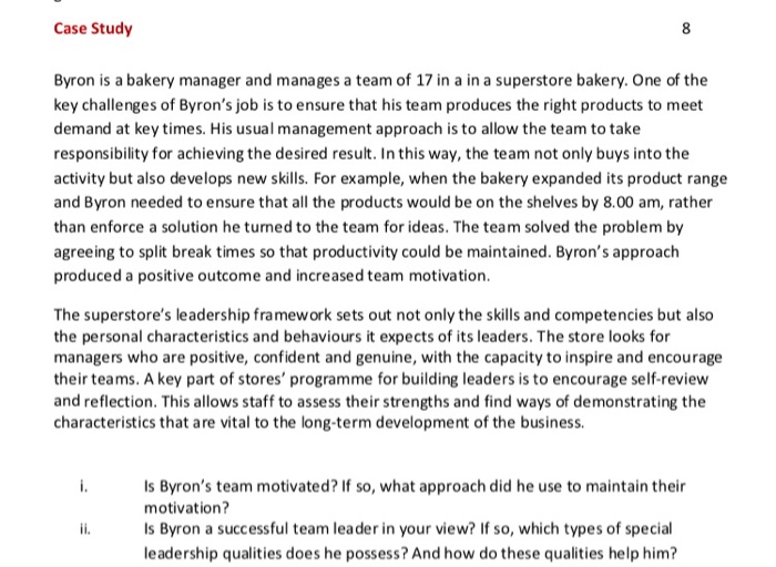 Solved Case Study Byron Is A Bakery Manager And Manages A Chegg Com