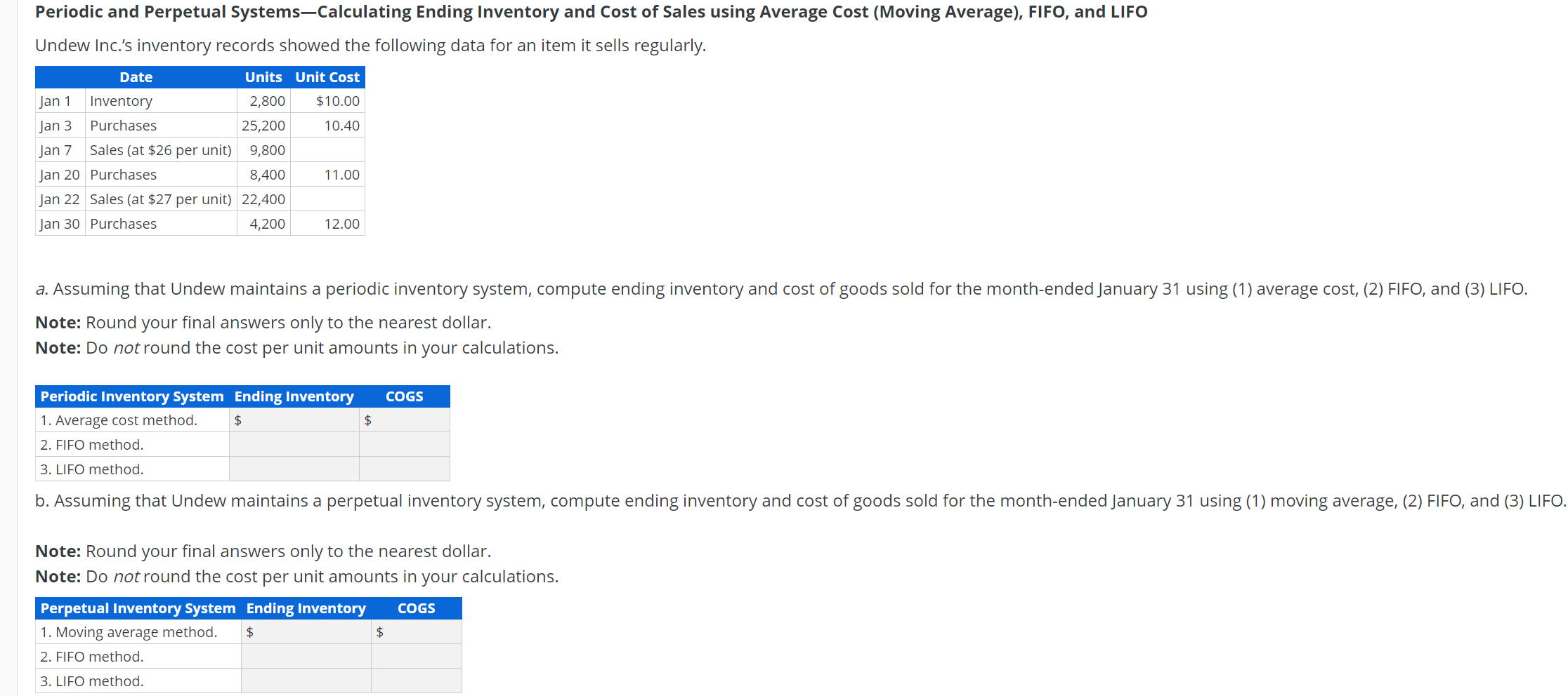 Solved E7 4 Calculating Cost Of Ending Inventory And Cost Chegg Com